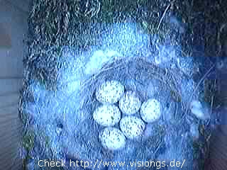 Was soll ich sagen ... ich bin sooo ergriffen von dem Schauspiel, das sich mir und meiner gigantischen Fangemeinde jetzt jeden Tag bietet. Die Zugriffszahlen steigen in astronomische Höhen und ich muss wohl bald mehr Bandbreite bei meinem Provider bestellen. Gestern konnte ich sogar fast live die Produkte meiner Warterei (jaja die Vögel haben auch was geleistet) einer breiten Öffentlichkeit(3) präsentieren (aufdrängen ?). Also es stimmt schon, dass nun jeden Tag ein Ei gelegt wird/wurde bis...